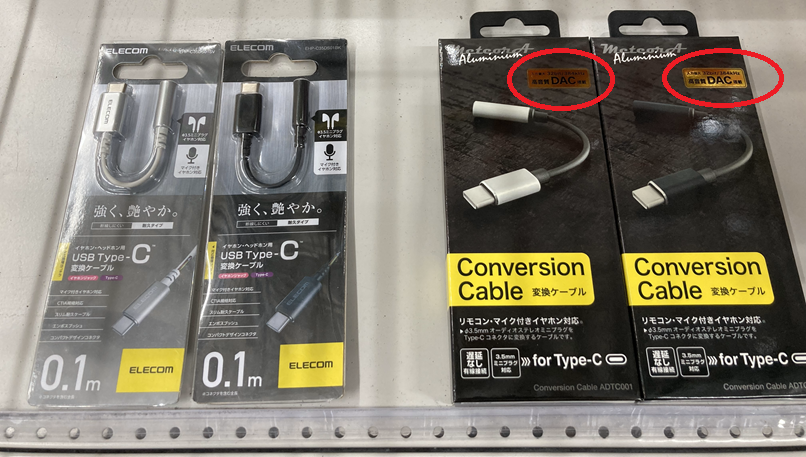 DAC搭載している製品は必ずパッケージに記載があるので、「DAC搭載」と記載があるものを買えば解決です。